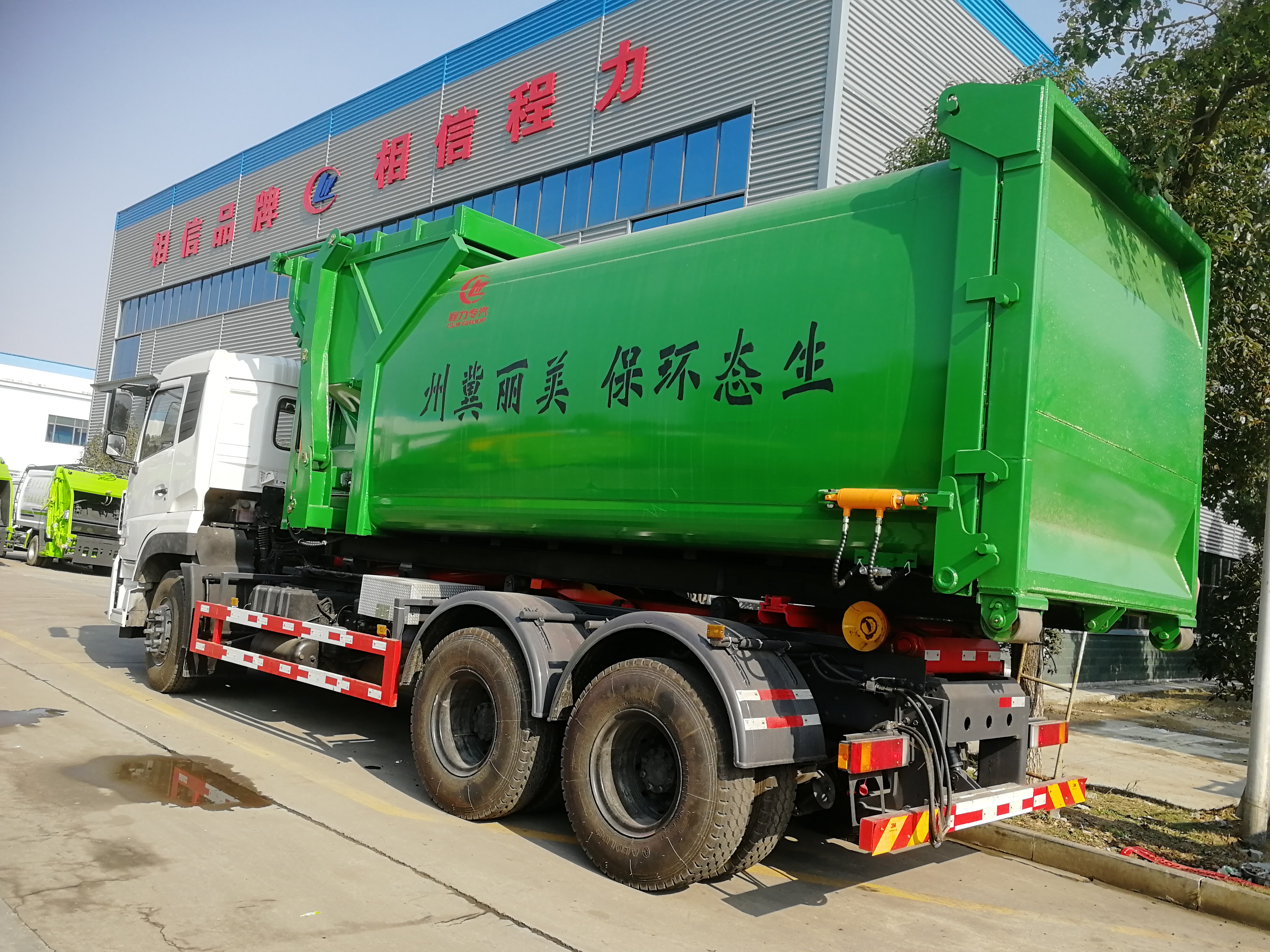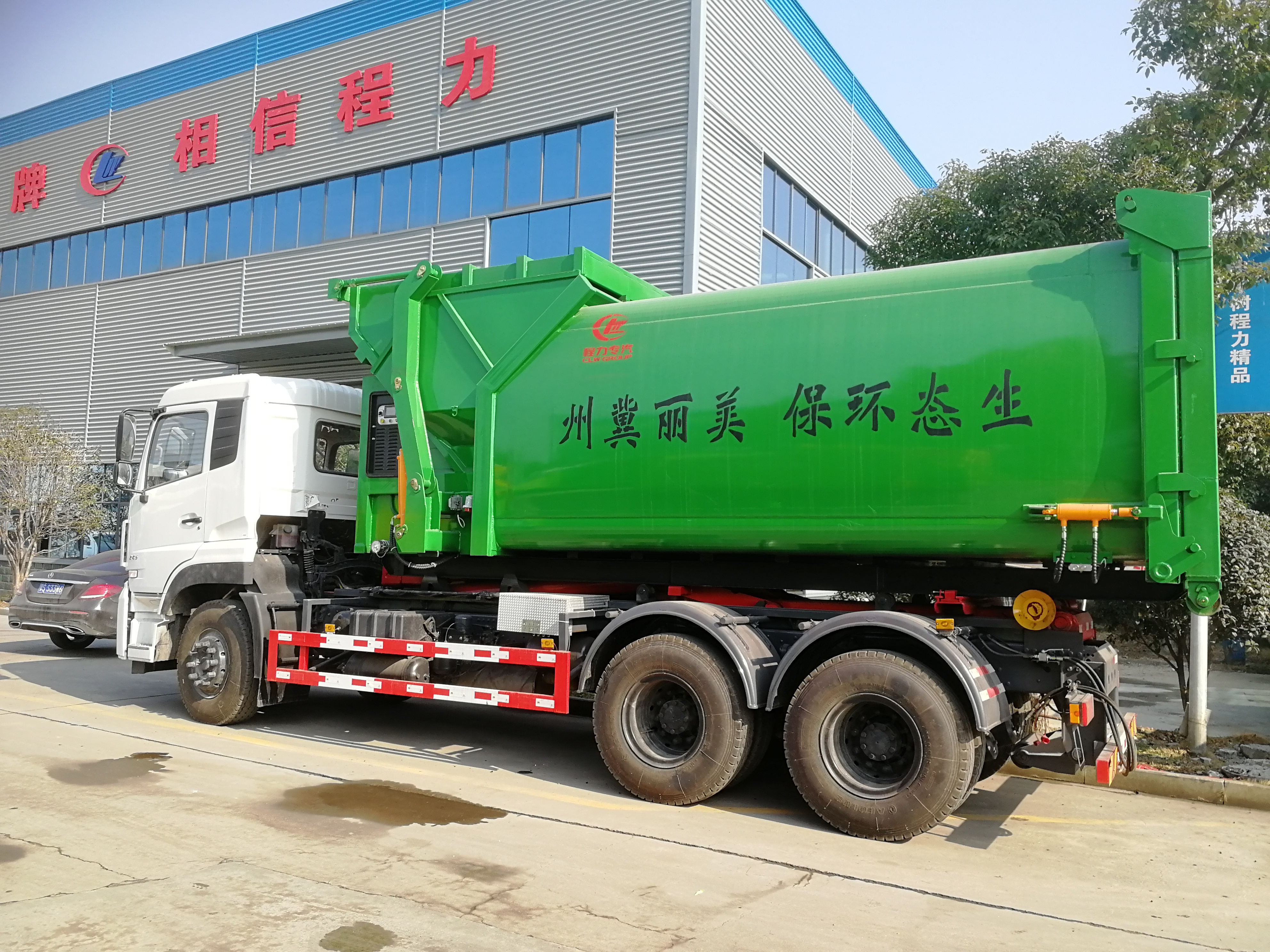 湖北程力熱銷東風天龍后雙橋勾臂垃圾車車廂可卸式垃圾車移動垃圾站產品推薦介紹:車廂可卸式垃圾車,合理的結構設計,及優良、靈活的簡便的性能操作。主要配套件全部采用國內外通用標準件,維修方便。適用于各種固態垃圾的收集。