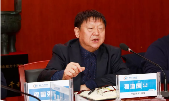 程力汽車集團股份有限公司董事長程道國在主席臺作重要講話。