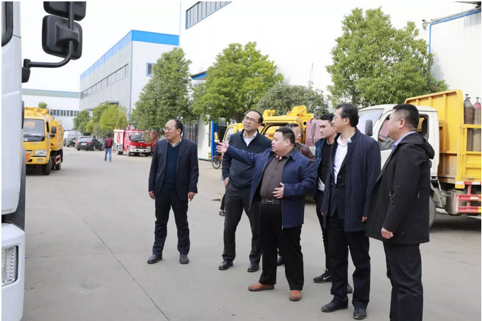 雙方座談會結束后,程阿羅總經理親自陪同福田公司黨委書記、總經理鞏月瓊等嘉賓們,一同參觀了程力總部老廠、程力新廠汽車工業園,以及集團子公司大力專汽、凱力專汽、盈通公司,并集體到訪程力重工觀摩指導工作。