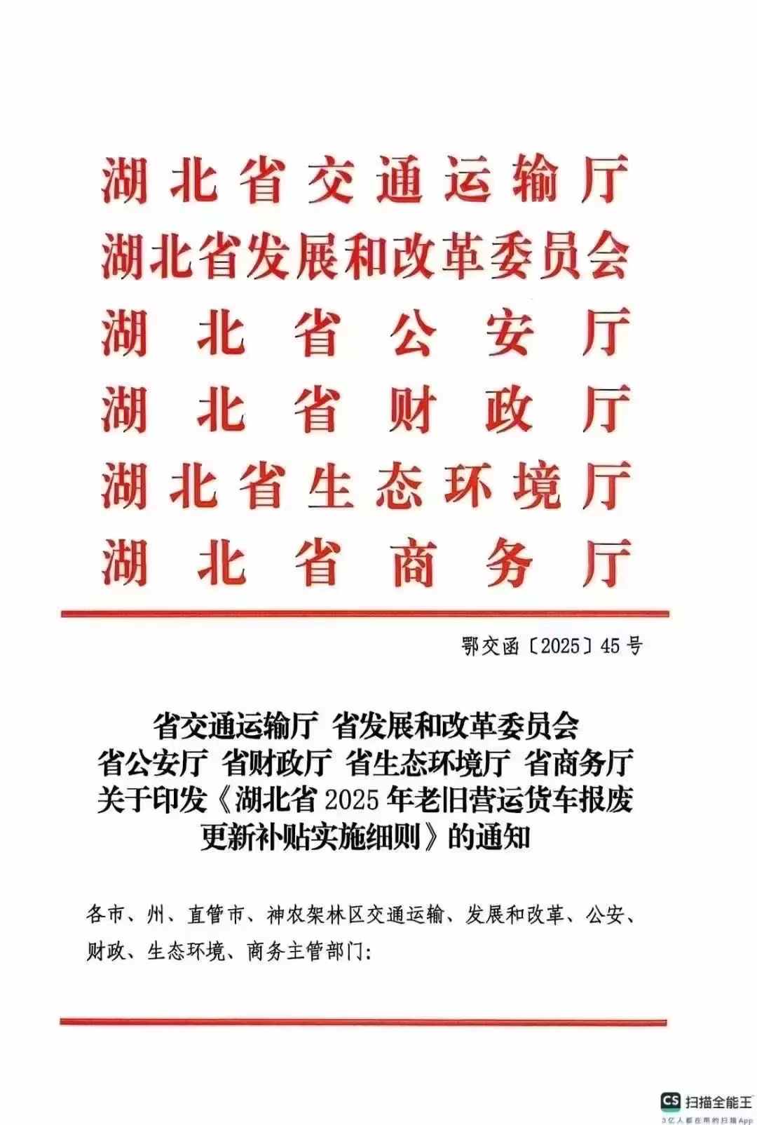 經常接到用戶電話首先會問現在購買程力專用汽車有沒有國家補貼政策,國家以舊換新政策以出臺。需要購車的老板抓緊時間!別的省份以當地補貼政策為準,不清楚的可以打電話到當地車輛報廢中心咨詢,不知道車輛報廢中心電話的,可以先打市長熱線詢問電話。需報廢的車輛必需為營運車輛(顧名思義就是要有營運證)下面是湖北省2025年老舊運營貨車報廢以舊換新政策補貼實施細則通知:
