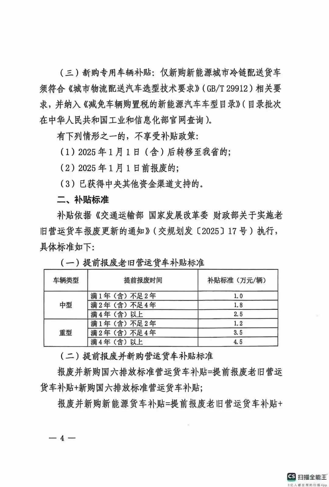2025年老舊運營貨車報廢以舊換新政策補貼實施細則