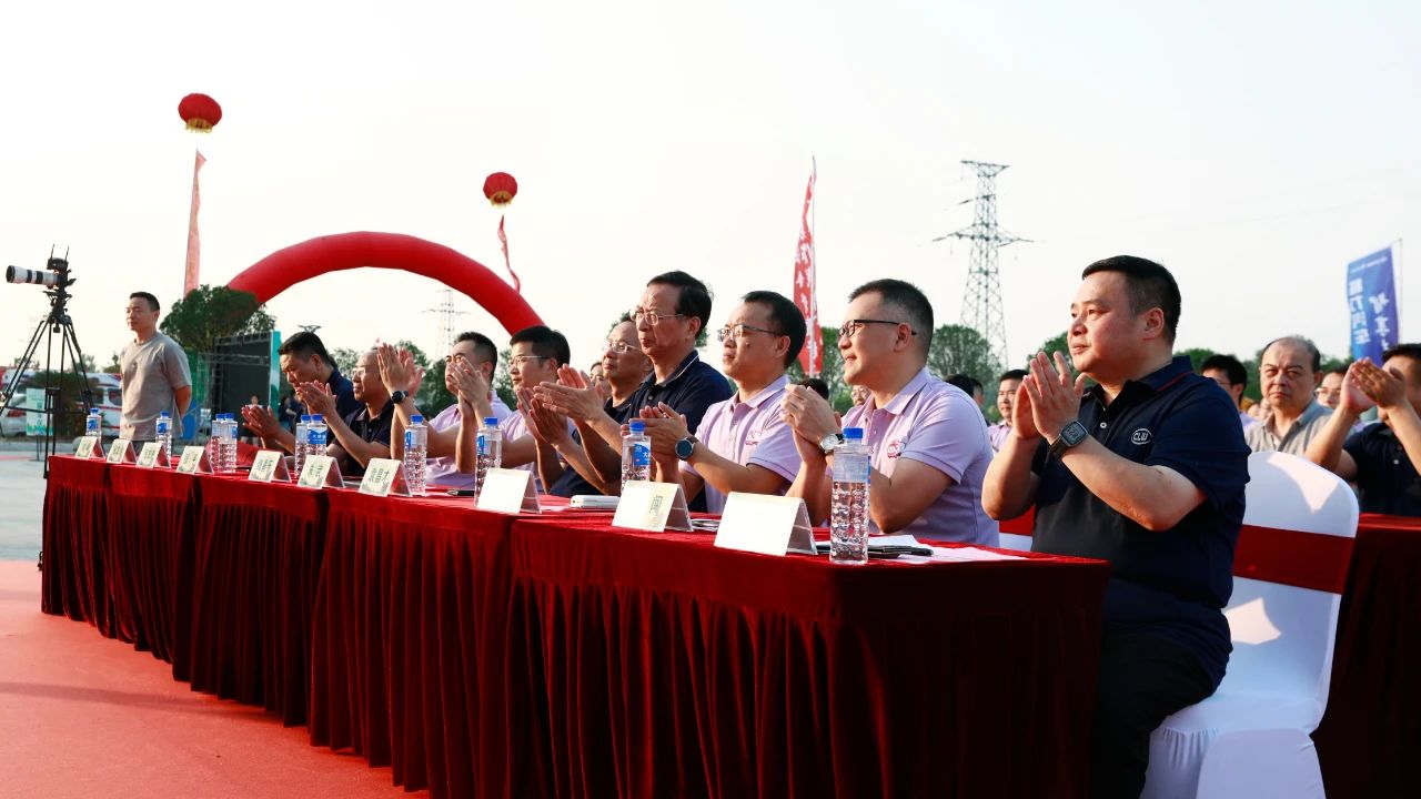 程力汽車集團副總經理劉峰(左一)、倪文濤(左二)、倪文進(左三)及江鈴銷售有限公司服務管理中心總經理張平(左四)、江鈴銷售有限公司傳播管理中心總經理魏喜樂(左五)前排就坐。鼓槌落下,如驚雷喚醒山河