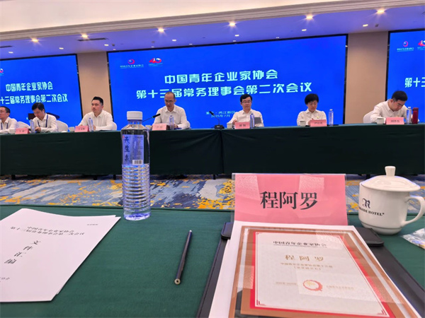 在中國青年企業家協會助力西部新通道活動暨十三屆常務理事會第二次會議上,程力汽車集團股份有限公司董事長、湖北省工商聯副主席、全國工商聯青委會輪值主席、全球楚商青委會會長程阿羅,很榮幸地被授予“中國青年企業家協會”榮譽副會長。
