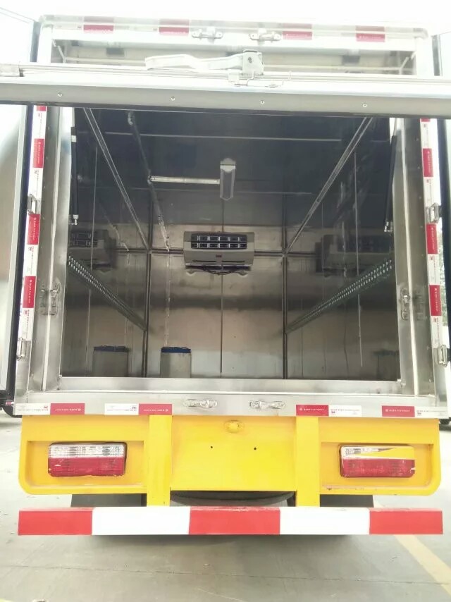 湖北程力東風(fēng)多利卡醫(yī)療廢物轉(zhuǎn)運(yùn)車: 配備東風(fēng)多利卡經(jīng)典1730駕駛室,朝柴100馬力,2噸前橋,3.5噸后橋,萬里揚(yáng)5檔變速箱,700鋼絲胎,氣剎,動轉(zhuǎn),ABS。車廂為密閉式結(jié)構(gòu),內(nèi)腔材料為不銹鋼板,防銹、防水耐腐蝕、易清洗和。車廂內(nèi)部裝有低溫殺毒,紫外線殺毒,噴霧殺毒設(shè)備,可隨時對車廂內(nèi)部進(jìn)行。廂體兩側(cè)設(shè)有桶固定裝置,保證車輛緊急啟動、停車或事故時廢棄物收集桶不會和翻轉(zhuǎn)。 湖北程力福田奧鈴醫(yī)療廢物轉(zhuǎn)運(yùn)車: