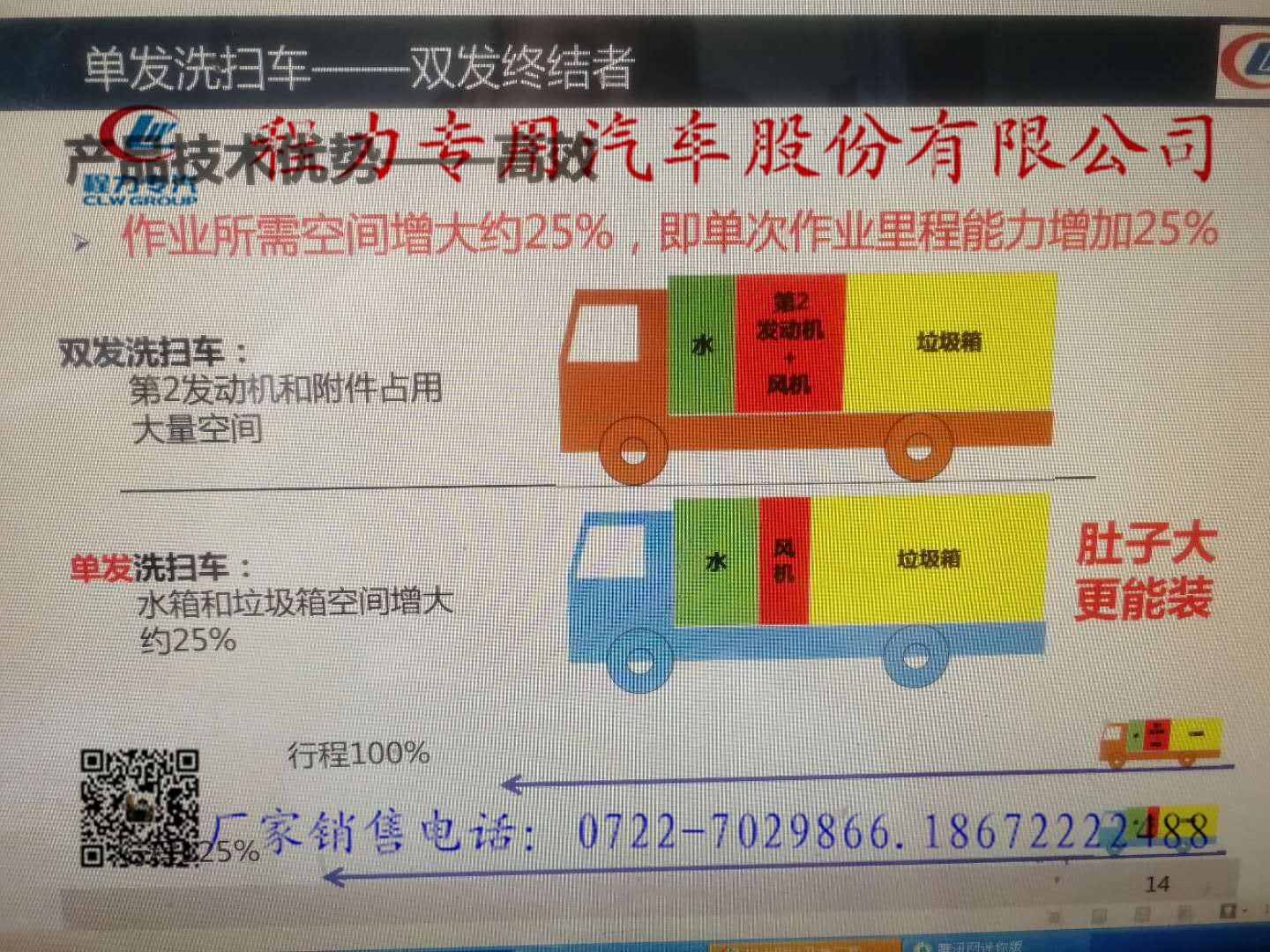 湖北程力掃路車第三屆交流大會(huì)新品發(fā)布《單發(fā)動(dòng)機(jī)洗掃車》 。湖北程力掃路車新品發(fā)布會(huì)上鄧博士講解單發(fā)洗掃車工作原理,單法洗掃車,真正國五排放,較雙發(fā)洗掃車工作效率提升20%,油耗降低18%,操作系統(tǒng)更平穩(wěn),符合國家節(jié)能減排大趨勢(shì),值得推廣! 湖北程力公司生產(chǎn)的掃路車具有被用戶普遍首肯的清掃、抽吸效率高,作業(yè)性能穩(wěn)定等特點(diǎn)。被廣泛應(yīng)用于城市街道、廣場(chǎng)、碼頭、機(jī)場(chǎng)、高架橋等場(chǎng)所的地面清掃、保潔。 |