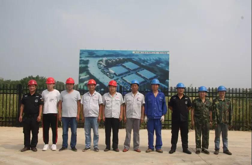 圖九:湖北程力重工消防隊員合影,左一為消防隊隊長高其榮、左三為副隊長吳繼國