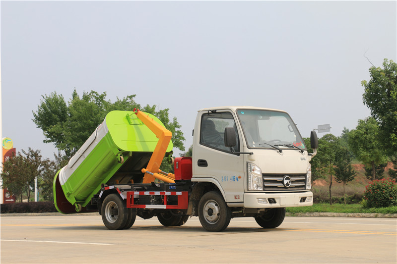 導讀:湖北程力國六凱馬汽油3方藍牌勾臂垃圾車(車廂可卸式垃圾車)…