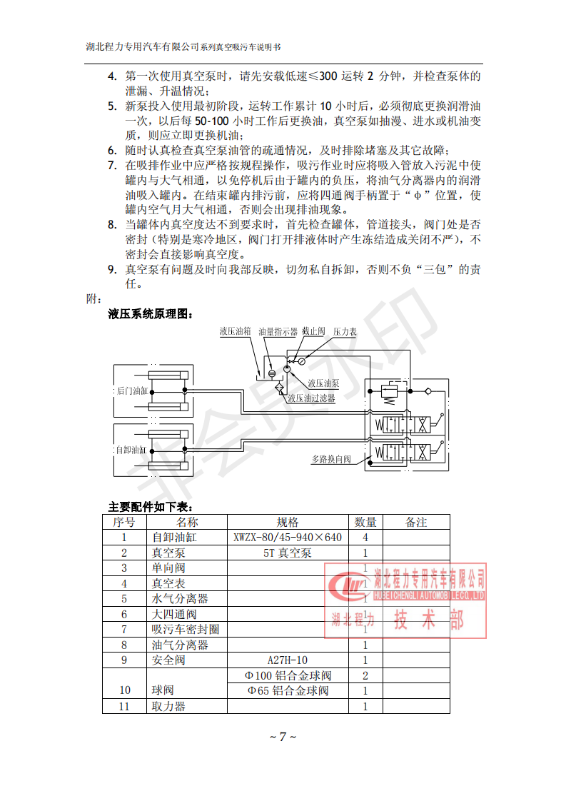 湖北程力環衛吸糞吸污車使用說明書(吸污車如何操作和注意事項)