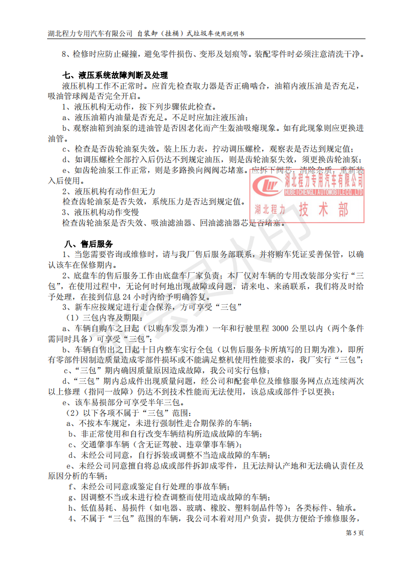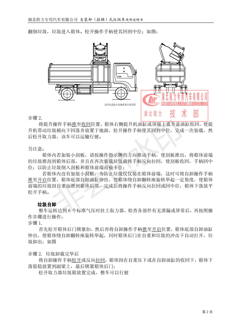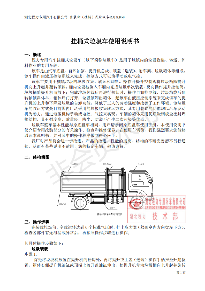湖北程力自裝卸式垃圾車(掛桶式垃圾車)使用說明書