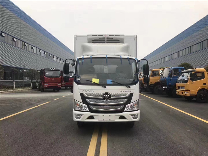 湖北程力福田歐馬可藍(lán)牌冷藏車 為了區(qū)別運(yùn)輸物品的冷凍,冷藏,保溫,恒溫類型,交通部通過命名冷廂上的A、B、C、D、E、F、H、F這些字母,將冷藏車分為8個(gè)等級。