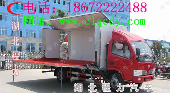 流動舞臺車的結構功能說明:流動舞臺車:通過機械裝置展開、搭建成具有頂棚和舞臺版演出的舞臺,并配備安裝舞臺燈光、音響等所需的專門裝置及電源接口等廂式專用車輛。