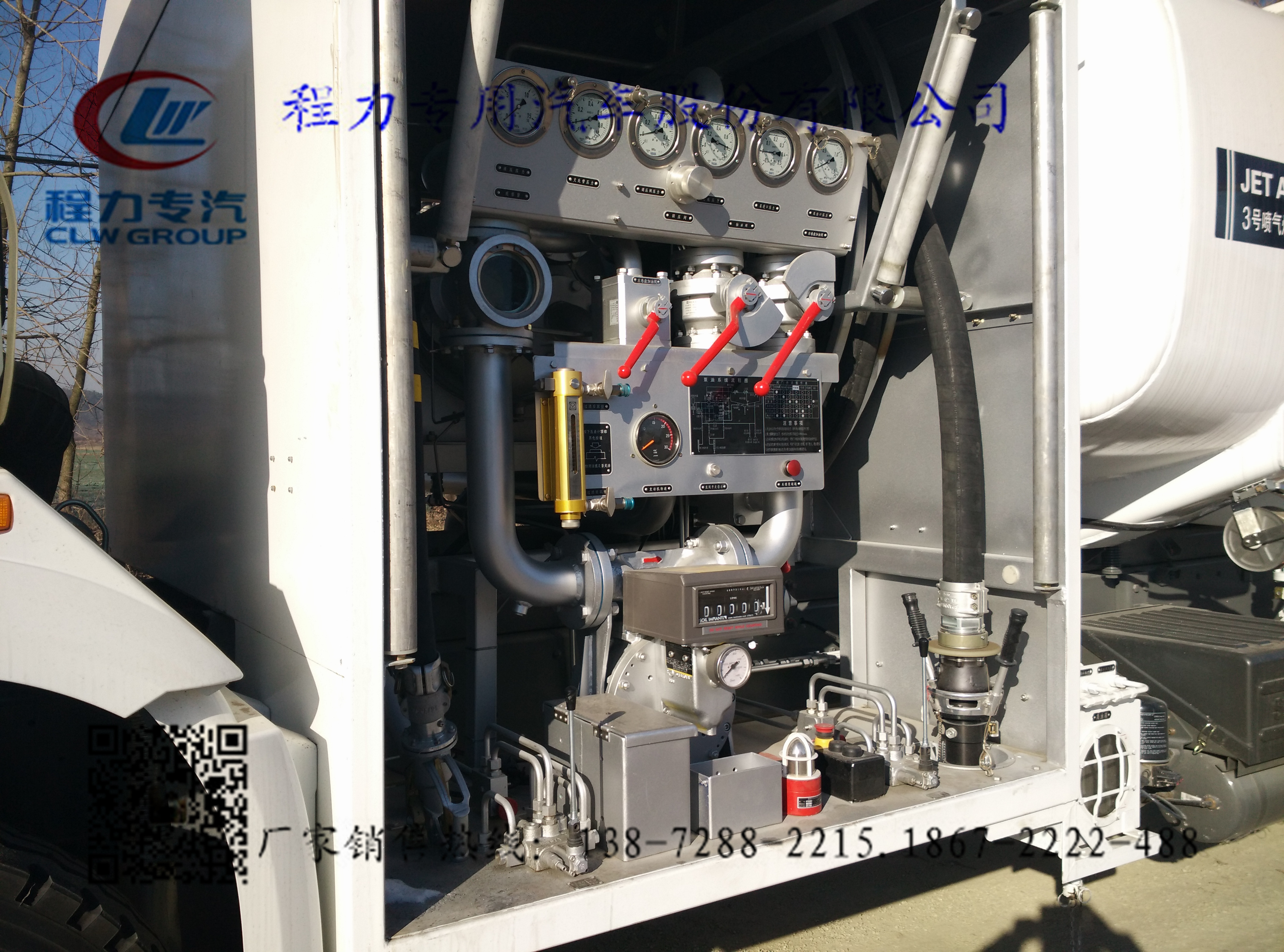 飛機加油車加油槍卷盤圖片 程力第一臺飛機加油車面世:采用東風勁卡底盤,整車型號:CLW5072GJYD4型加油車,底盤型號:DFA1070SJ35D6, 實際容量:5方,總質量:7.3噸,整備質量:3.865噸,額定載質量:3.24噸, 整車長度:5995*1960*2400mm, 軸距:3300mm,發動機采用4DW93-84E4一汽解放汽車有限公司無錫柴油機廠錫柴發動機,罐體采用4MM不銹鋼板制作。帶歐標罐口,導靜電線盤,專用油泵防溢漏探桿及插座,海底閥,浮球液位計,泵轉速表,泵進口真空表(接管),泵出口壓力表(接管),泵出口采樣閥,過濾后取樣閥,過濾分離器排污口取樣閥,取樣閥合并緩速筒,取樣器取樣回收油桶,YC-12型壓差計,閉路目測透明取樣器,高液位報警器,低液位報警器(帶開關),壓力可調式溢流閥,HYJ-63X接頭閥,80WGF-60/10過濾分離器,腰輪流量計,卷盤槍。 飛機加油車細節圖片: