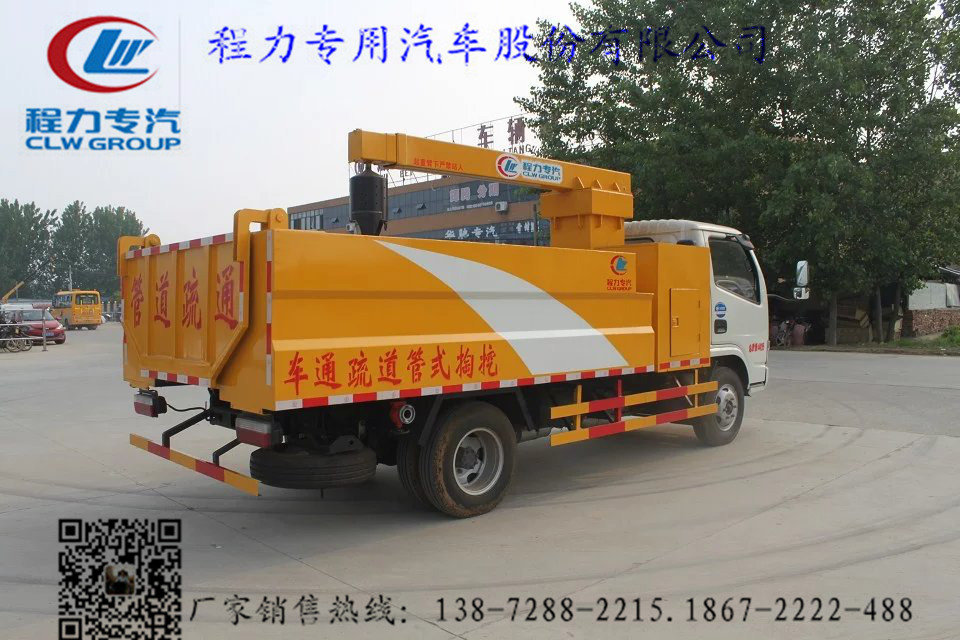 該車可以將300-1500mm管徑下水道中的堵塞物挖掏物清理干凈,該車工作效率高、勞動強度小,清率淤達到95%