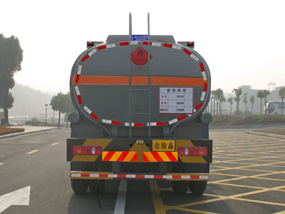 運輸介質品名:二異丙胺,密度:0.7噸/立方米,危險品類項號:3;罐體有效容積:13.49立方米;整車長(mm): 7900,對應軸距(mm):4500,對應罐體外形尺寸(長/長軸/短軸)(mm):5200/2300/1550。整車長(mm): 8600,對應軸距(mm):4700,5000,對應罐體外形尺寸(長/長軸/短軸)(mm):5800/2200/1450。駕駛室前臉選裝擾流罩。防護材料:Q235A碳鋼,連接方式:左右側面及后下部防護均采用焊接連接,后部防護斷面尺寸(mm):100×50,后部防護離地高度(mm):500。安裝限速裝置,限速80km/h。該車安裝帶有衛星定位功能的行駛記錄儀。僅采用前盤制動器和安裝ABS以及前置消聲器的底盤。僅采用子午線輪胎。 ABS生產廠家:WABCO,型號:4460043200和ABS生產廠家:東風電子科技股份有限公司制動系統公司,型號:3631010-C2000。