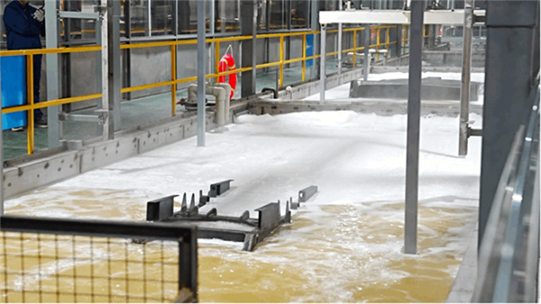 防銹處理一直是專用車行業不能回避的話題,防銹處理做得好不好直接關系到產品使用壽命。在電泳技術出現前,行業內普遍使用的是酸洗磷化工藝,產品使用壽命相對較短,不利于保護環境。程力專用汽車股份有限公司提供圖片