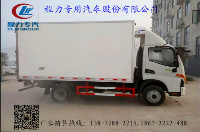 3.上裝配置:廂體內部有效尺寸:單排長4.03米/排半長3.7米×寬2.08米/1.9米×高2米/1.9米,廂體蒙皮采用內外玻璃鋼,隨客戶選擇內置槽鋼焊接骨架或者玻璃纖維超輕高強度骨架,填充8cm聚氨酯保溫層,不銹鋼包角,不銹鋼門框,不銹鋼門鎖件,防滑花紋鋁底板,配后雙開門,車廂右側可以加開側門,-5~-18度制冷機組