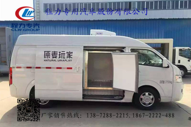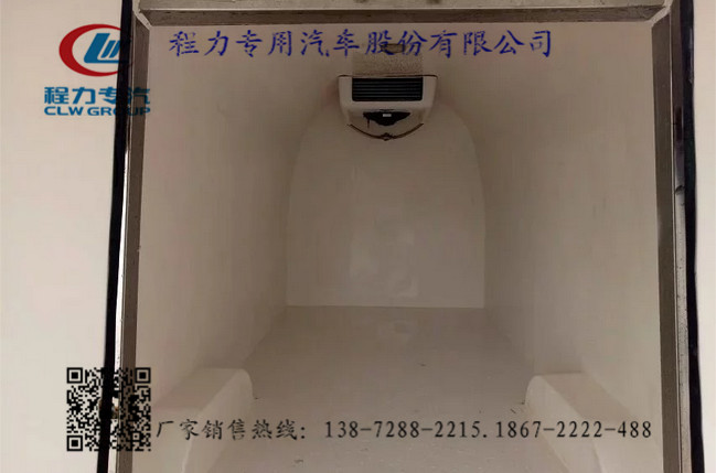 2.上裝配置:廂體采用聚氨酯一次發泡成型,冷藏廂內部尺寸:長2.9米,寬1.3米,高1.4米,廂體有效空間大,有5~6立方,冷藏廂無油漆,無縫隙,無異味,花紋底板或者玻璃鋼(選裝T型材通風槽)后面配置雙層門,不銹鋼門鎖件,不銹鋼門框,冷藏廂和駕駛室用活動隔板隔開,既美觀又為駕駛室后面隔開一個小型雜物間,-5~-18度度制冷機組可選。
