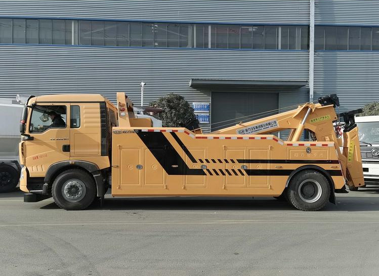 湖北程力國六豪沃單橋托吊連體清障車程力威牌CLW5183TQZZ6型清障車廠家配置: 16噸國六重汽豪沃單橋拖吊聯(lián)體清障車:底盤型號ZZ5207V6017F1,HW76新款前臉駕駛室,國六MC9.3B-60發(fā)動機,HW19710變速箱+HW70法蘭式取力器,HR7前軸,ST16自調(diào)臂單后橋(鼓式制動),HR7前軕(盤式制動);雙層車架(8+5/300),ZF8198方向機,前后標準版多片簧(10/9+6);低位杠,帶ABS,標準版排氣系統(tǒng),無氣候包,12.00R20,速比3.93;選裝冷暖空調(diào),選裝300L油箱,選裝整車前下防護,選裝中國重汽智能版; 湖北程力國六豪沃單橋托吊連體清障車上裝配置:10噸、12噸后托臂,雙8噸絞盤,聯(lián)體式上裝,進口閥,二節(jié)式六邊型吊臂,三節(jié)托臂,分體式車廂,電泳漆,雙側(cè)聯(lián)動操作裝置,三十五米鋼絲繩,直徑16mm,配置四套鋼叉,二套拖叉座,一套鋼板吊耳拖叉,輔助氣管總成一套,工程警燈一套。 湖北程力國六豪沃單橋托吊連體清障車程力威牌CLW5183TQZZ6型清障車圖片價格: