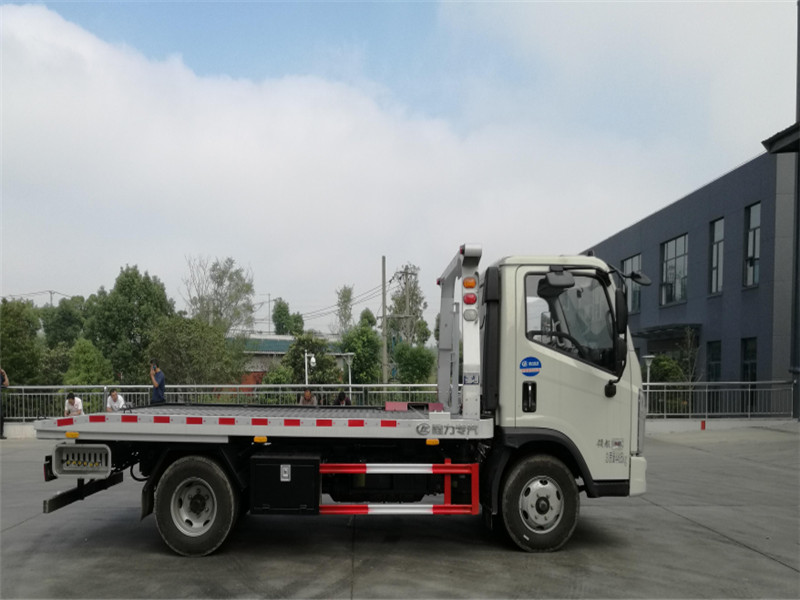 備注:ABS型號:CM4XL-4S/4M;ABS生產企業:廣州瑞立科密汽車電子股份有限公司;選裝描述:隨底盤選裝駕駛室,選裝液壓翻轉板,液壓翻轉板收起狀態的水平長度為180mm,選裝全落地裝置;所用材料材質、連接方式以及后部防護裝置的主要尺寸參數(斷面尺寸和離地高度):防護材料:Q235B碳鋼,連接方式:左右側面防護與后下部防護均采用焊接連接,后部防護斷面尺寸(mm):100×50,后部防護離地高度(mm):350;專用功能及裝置:主要專用裝置為背載裝置,最大背載質量500kg;其他說明:該車主要用于道路故障車輛,城市違章車輛清理;