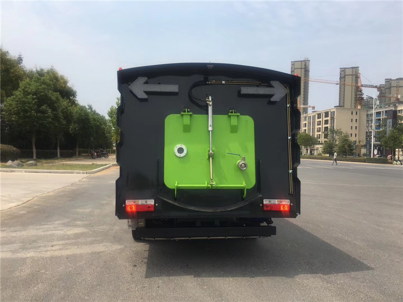專用性能參數 | 垃圾箱容積( m3 ) | 4(不銹鋼材質) | 清水箱容積( m3 ) | 4(不銹鋼材質) | 清掃寬度(mm) | 2800-3200 | 清掃作業速度(km/h) | 3-15 | 保潔作業速度(km/h) | 15-20 | 最大清掃能力(m2/h) | 48000 | 抽吸能力 | 密度(g/cm3) | 2.0 | 質量(kg) | 1.5 | 抽吸粒度(mm) | ≥100 | 垃圾廂傾卸角 | ≥45° | 清掃效率 | ≥96% | 作業噪聲(db) | < 88 符合GB7258規定 | 行駛性能參數 | 驅動型式 | 4×2后軸驅動 | 懸架型式 | 鋼板彈簧 | 鋼板彈簧片數(前/后) | 8/10+7 | 制動型式 | 雙回路氣壓制動、鼓式 | 制動距離(滿載30km/h) | ≤10m | 最高車速(km/h) | 99 | 最小轉彎半徑(m) | 8 | 最大爬坡度 | ≥30% | 離合器系統 | 單片干式膜片彈簧離合器,液壓操縱 | 變速器系統 | 機械式5檔變速器,帶同步器,手動 | 發動機耗油量 | 行駛(L/100km) | 作業(L/h) | 作業(L/10000m2) | ≤12 | ≤6 | ≤3 | 降塵系統 | 噴水形式 | 低壓霧狀 | 主要元件組成 | 水過濾器、管路、不銹鋼噴架、高壓噴嘴等 | 高壓水泵 | GTM | 安裝位置 | 清掃降塵 | 左右前掃盤 | | 吸塵降塵 | 吸盤吸風口內 | | 控制型式 | 電子控制,一鍵操作 |