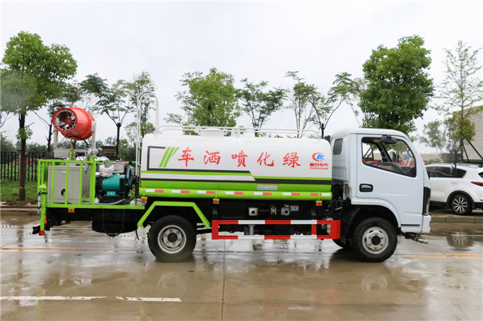 國六5方綠化噴灑車打藥車|抑塵車(帶噴霧機組)底盤配置:采用東風D6系列新款駕駛室,3308mm軸距,搭載國六(國Ⅵ)云內126馬力柴油發動機/一汽錫柴110馬力柴油發動機/東風朝陽130匹馬力柴油發動機,萬里揚5檔變速箱,3.5T后橋,7.00R16鋼絲胎,ABS,標配電動窗、中控鎖、遙控鑰匙、日間行車燈、自動落鎖、斷氣剎、定速巡航、瞬時油耗,科技感十足,駕乘更舒適,GB7258新規。 國六5方綠化噴灑車打藥車|抑塵車(帶噴霧機組)罐體容積5方多功能霧炮車 國六東風D6多功能抑塵車專用配置:罐體容積 5立方,罐體采用國標Q235碳鋼材質,罐體厚度4MM,前后封頭5MM加厚型,罐體內雙層隔板具有防波蕩作用,以減輕汽車行駛時罐內液體沖擊;灑水車整車及外形尺寸嚴格按照國家機動車公告制作而成;裝配大功率專用灑水泵,前沖、后灑、側噴、后平臺帶綠化灑水炮,灑水炮可全方位旋轉,可連續調成直沖狀、大雨、小雨、毛毛雨;配消防接口,自流閥,濾網,帶自吸自排功能。前封頭帶水位計,后平臺主管路帶1寸澆花接口,后爬梯,帶1個消防接頭,帶1個自流閥,1個過濾裝置,其余標配。加裝30米噴霧機組。 國六5方綠化噴灑車打藥車|抑塵車(帶噴霧機組)程力威牌CLW5071GPSD6型CLW5073GPSD6型 CLW5072GPSD6綠化噴灑車圖片價格:
