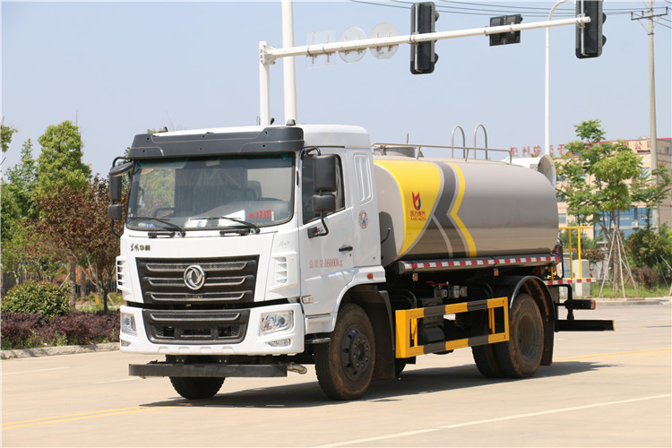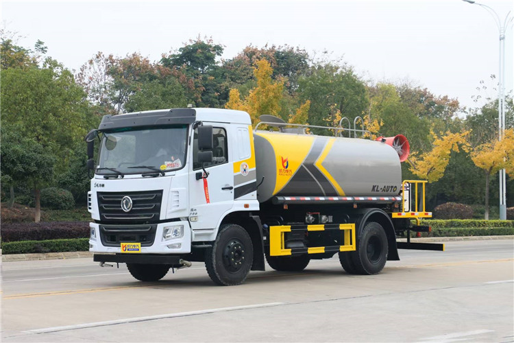 國六東風華神F5綠化噴灑車(12方帶霧炮灑水車)國六東風華神F5 灑水車基本配置, 軸距3950 mm, 玉柴165 馬力國六柴油發動機,陜齒小八檔(帶高低速),9.00R20輪胎,2.8T前橋,7.8T后橋,原裝空調,氣囊座椅,鑰匙,電動玻璃。采用大流量水泵60-90,基本灑水功能前沖、后灑、側噴、工作平臺帶高炮(可調節成霧狀、直柱狀)、可泵進泵出、罐體兩側炮筒、帶兩根抽水軟管,上裝標配,罐體自動焊,大梁不動焊