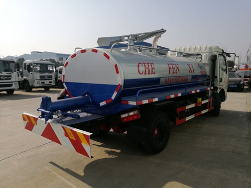 垂直吸程≧7,灑水寬度≧14-16,射程≧28-30揚程90,引水時間<5min,流量90m3/h前沖(噴)、后灑、帶側噴(花灑)、帶后工作平臺、平臺上安裝綠化灑水高炮(炮噴射形狀可調節:直沖、大雨、中雨、毛毛雨、霧狀、可連續調節,360°旋轉),配消防接口,自流閥,濾網,帶自吸自排功能。根據客戶要求加裝灑水功能,水、糞罐可獨立分倉,即可吸糞又可做灑水車使用,達到一車兩用的目的。