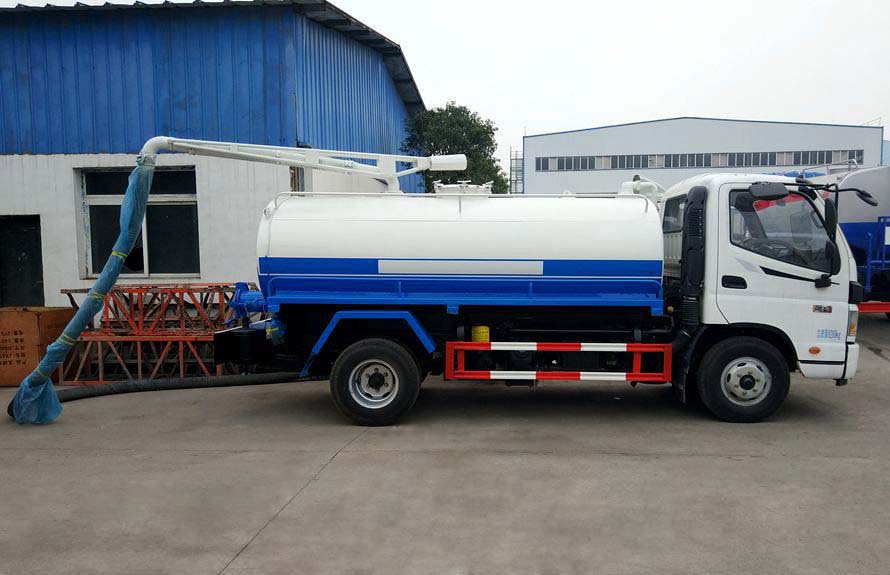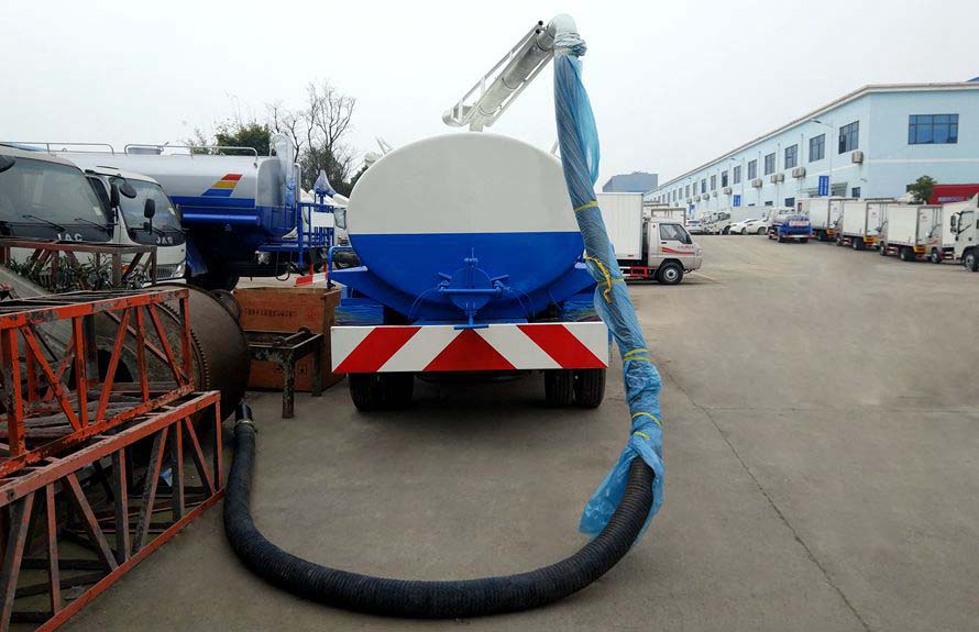 吸糞車專用部分由取力器、傳動軸、真空吸污泵、高壓成型罐體、油氣分離器、吊桿、放糞閥、吸糞槍,管網系統組成,并裝有真空壓力表、視污窗(管),洗手裝置。公司生產的吸糞車安裝進口防溢流裝置,防止糞便、污水因吸滿倒灌至真空泵系統。 吸糞導物管可360度旋轉,排放有加壓排放和自流排放兩種方式。